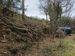 Remember last month when we were halfway through laying the hedge along the road? Well, we’re happy to report that we’ve completed that task, and the brash has been put to good use around the grounds!