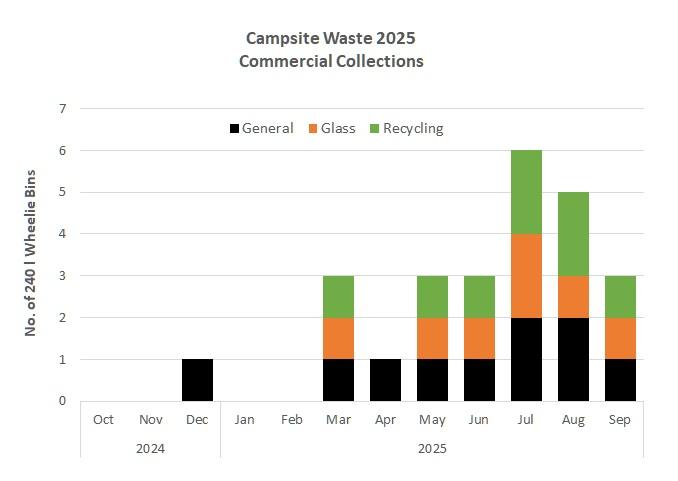 Did you know that as a business, we are not allowed to use the municipal waste collection services and have to pay for a separate commercial waste and recycling collection. There is only one service provider prepared to come to us, so we pay a premium for the service. General waste collection costs a lot more than our recycling collection. So please help us keep our costs and your prices low by putting your waste in the right bin first time. Most months we have less than one wheelie bin of general waste but in July and August when we have more campers this rises to 2 wheelie bins.