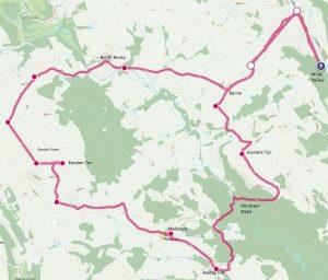After crossing the river successfully we headed up to the Kestor Inn at Water for lunch. After lunch we walked up through Manaton, hoping to find cakes in the cake cupboard. But being a damp Monday before the school holidays had started we were disappointed. Continuing on we climbed to the top of Easdon Down to enjoy the view. We then walked on down into North Bovey but unfortunately we didn’t have time to enjoy a drink at the Ring of Bells before heading back to the car. The total length of our walk was 14km with 477 m ascent. If you start from here its 19km with 600 m ascent.