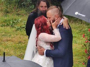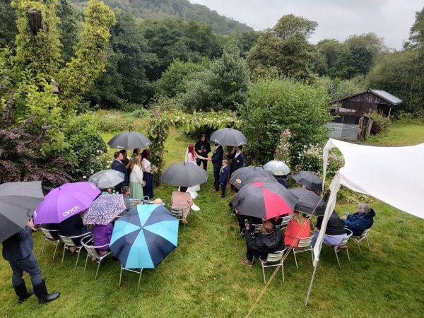 As it turned out this was a wise decision as their chosen day was one of the wettest so far, but they decided to go ahead with it, and they certainly have something to remember! The guests were able to shelter in our guest lounge before the ceremony and were warned to bring wellies and brollies.